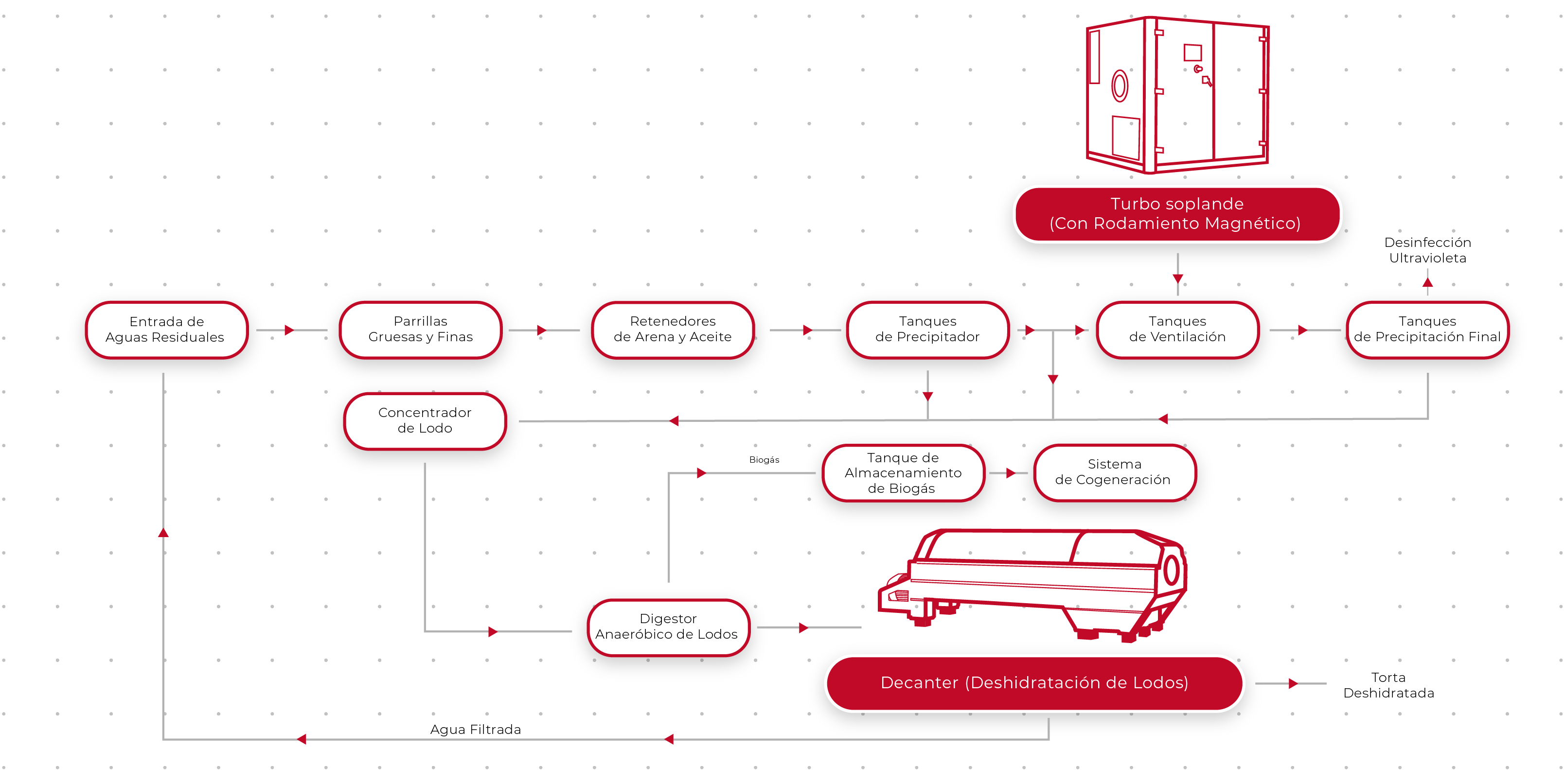 • La alimentación de aire necesario para los tanques de ventilación biológica se suministra mediante turbosopladores.