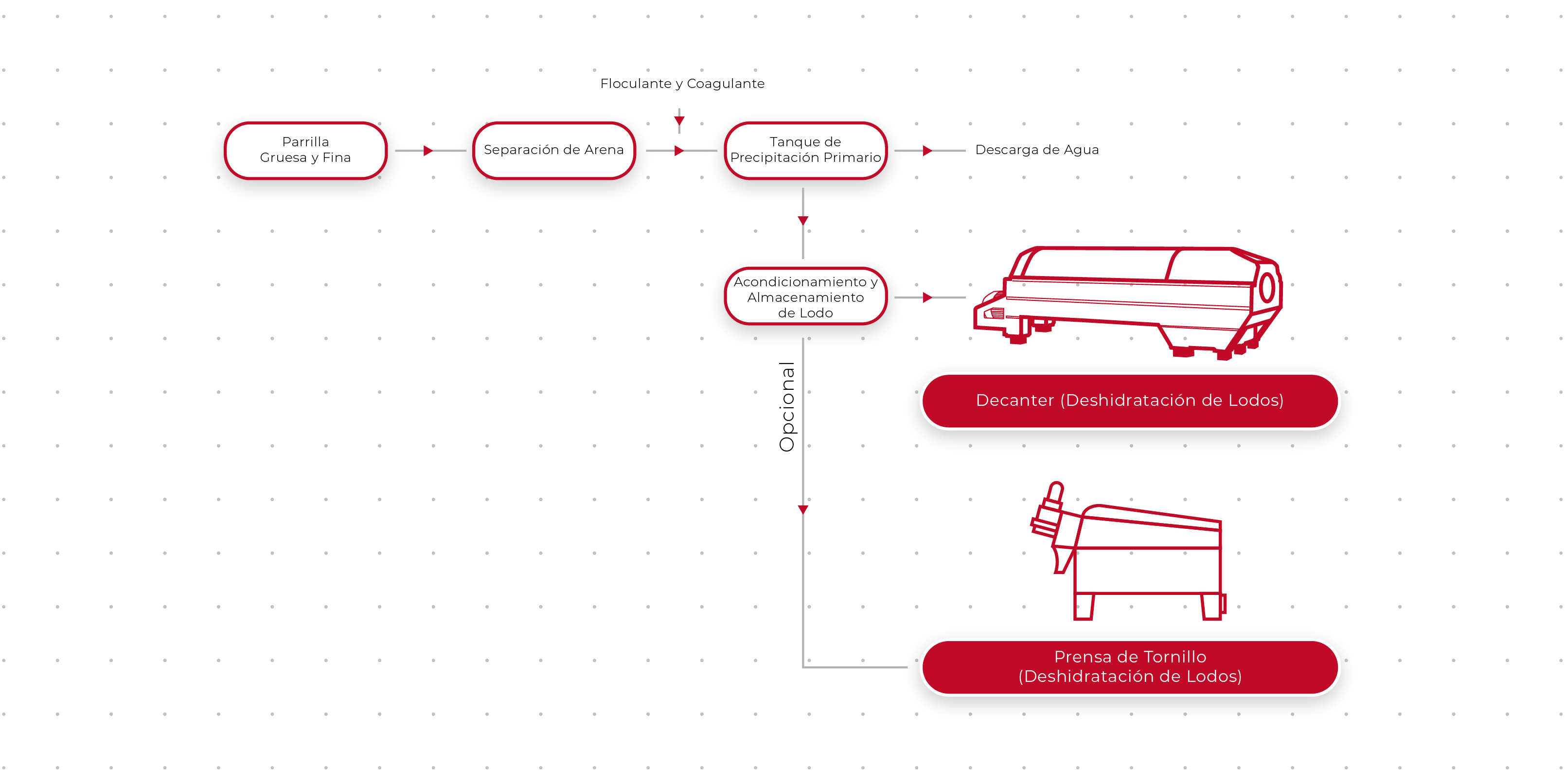 Proceso de Desagüe: Se utiliza un decantador o una prensa de tornillo para deshidratar el lodo primario o secundario.