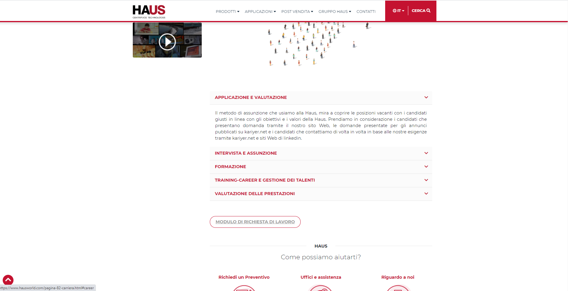 Per il modulo domanda di lavoro: https://www.hausworld.com/pagina-82-carriera.html