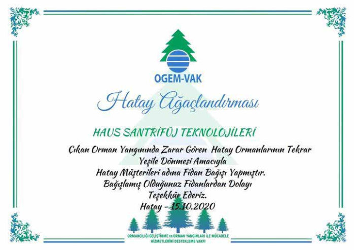 HAUS costruisce prodotti rispettosi dell'ambiente e si prende cura della natura. Riguardo a ciò per un mondo e un futuro sostenibili, l'azienda sostiene il progetto per la piantagione di alberi in Turchia. Soprattutto dopo gli incendi boschivi nella regione.
